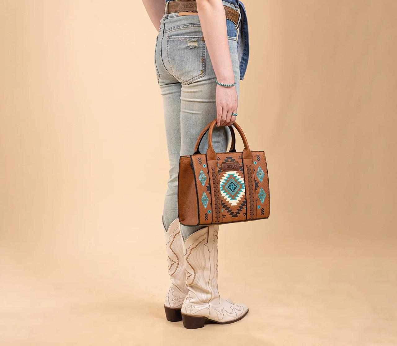 Montana West Wrangler Women's Brown Aztec Pattern Tote Bag