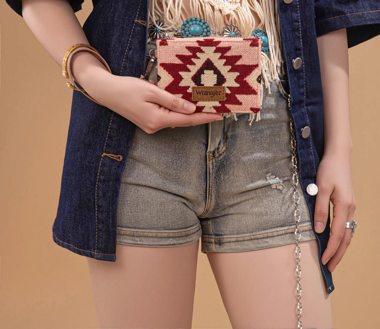 Montana West Wrangler Women's Dark Pink Aztec Print Card Wallet