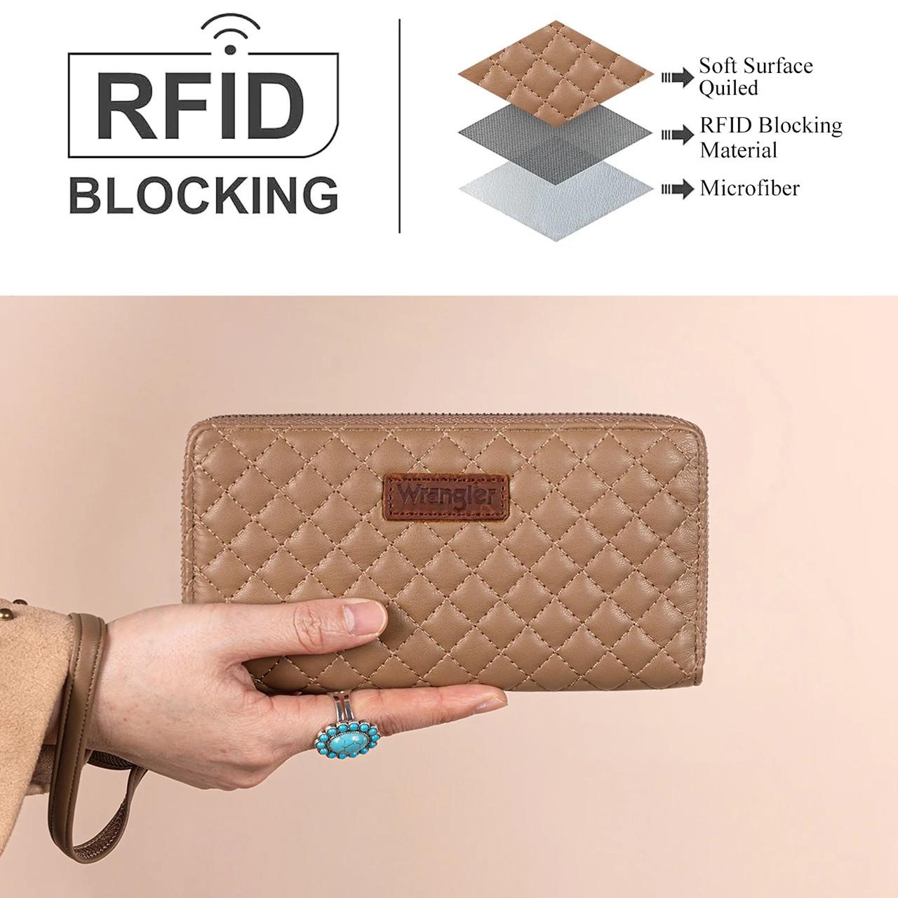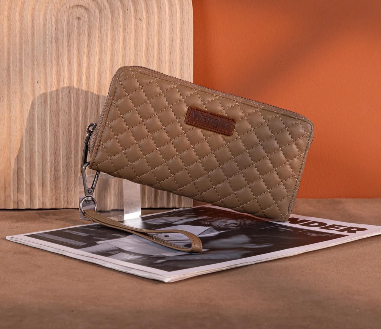 Montana West Wrangler Women's Khaki Quilted Design Wallet/Wristlet