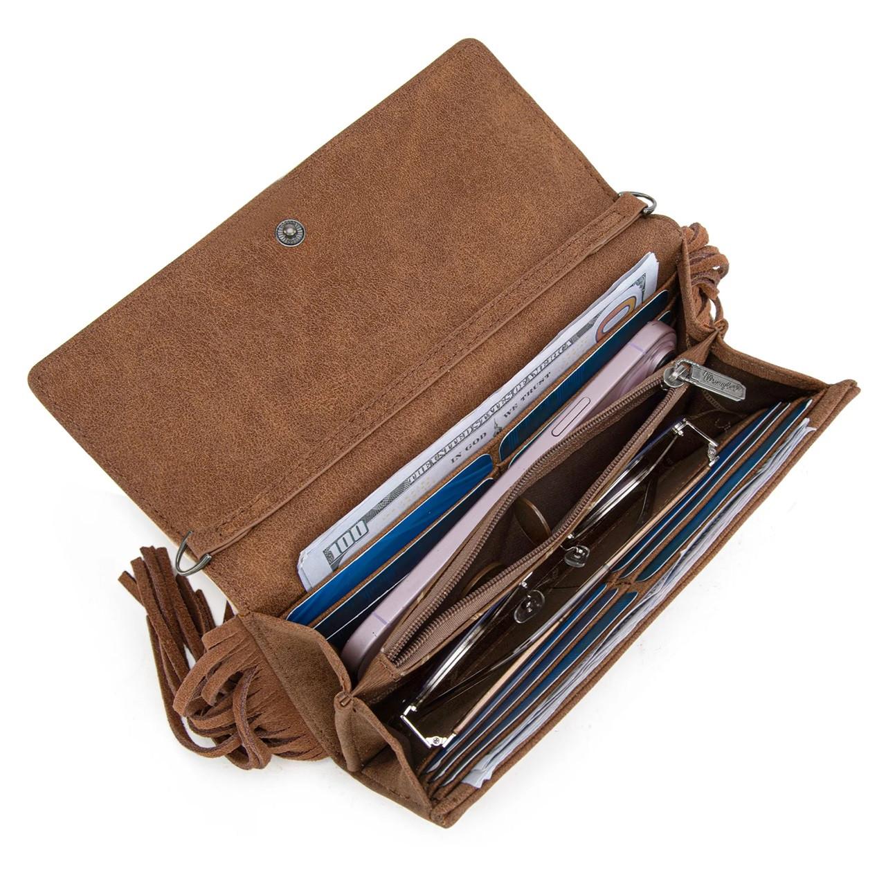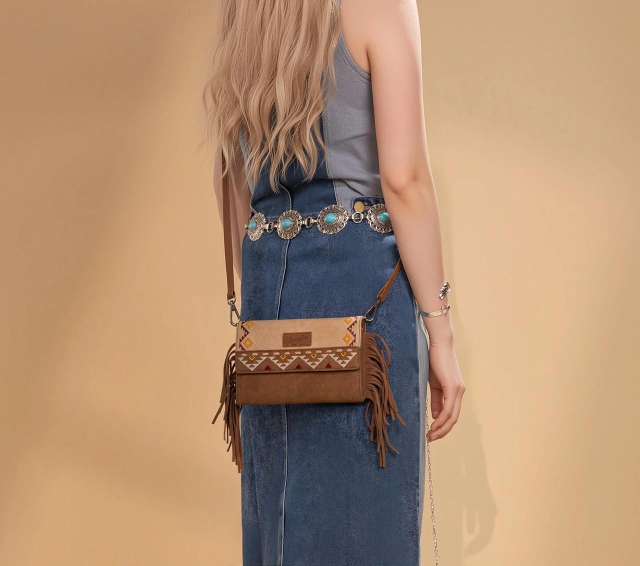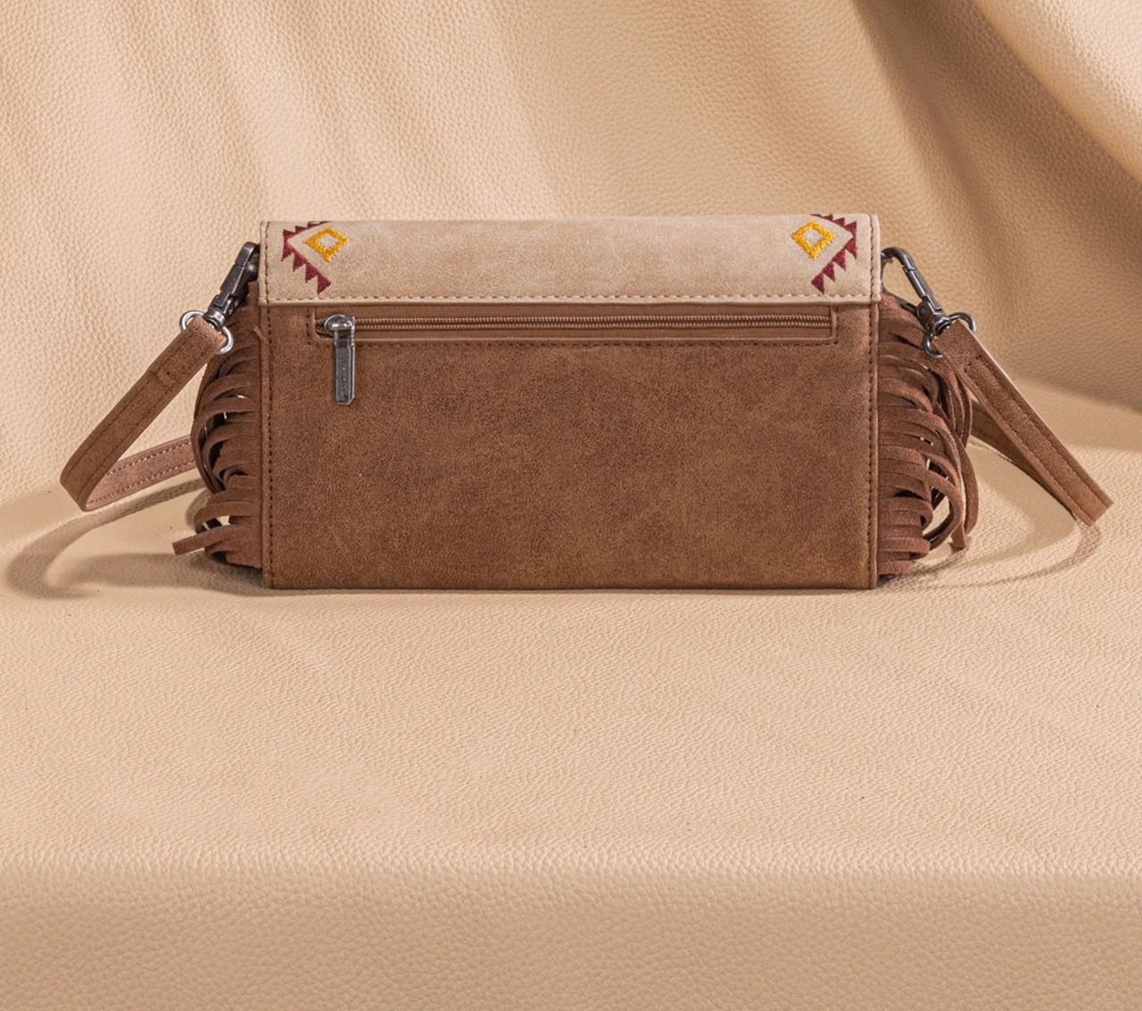 Montana West Wrangler Women's Tan Aztec Embroidered Fringe Wallet