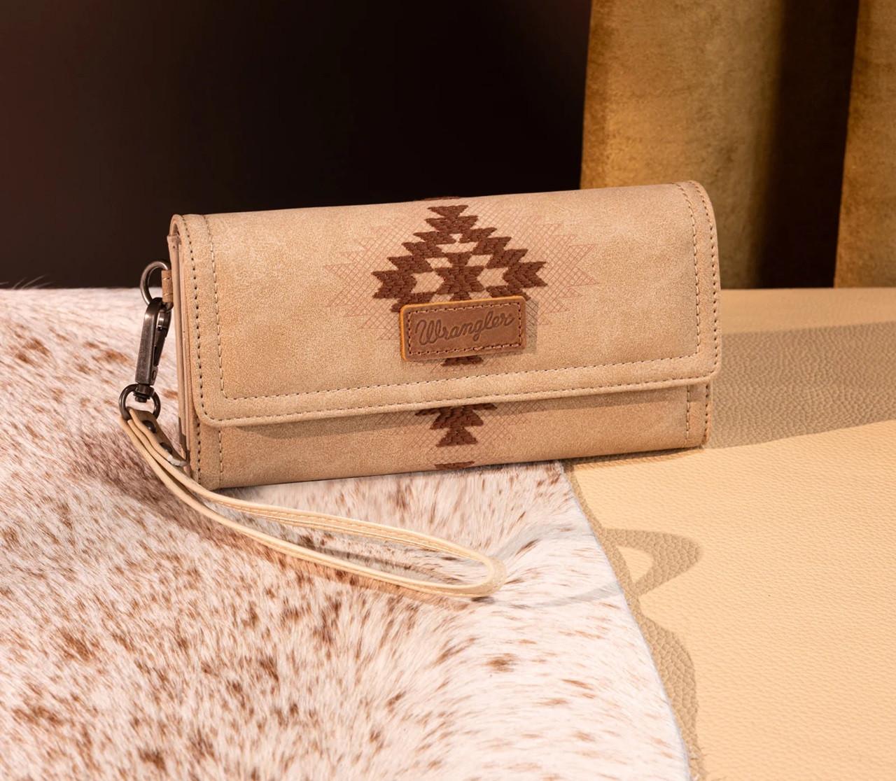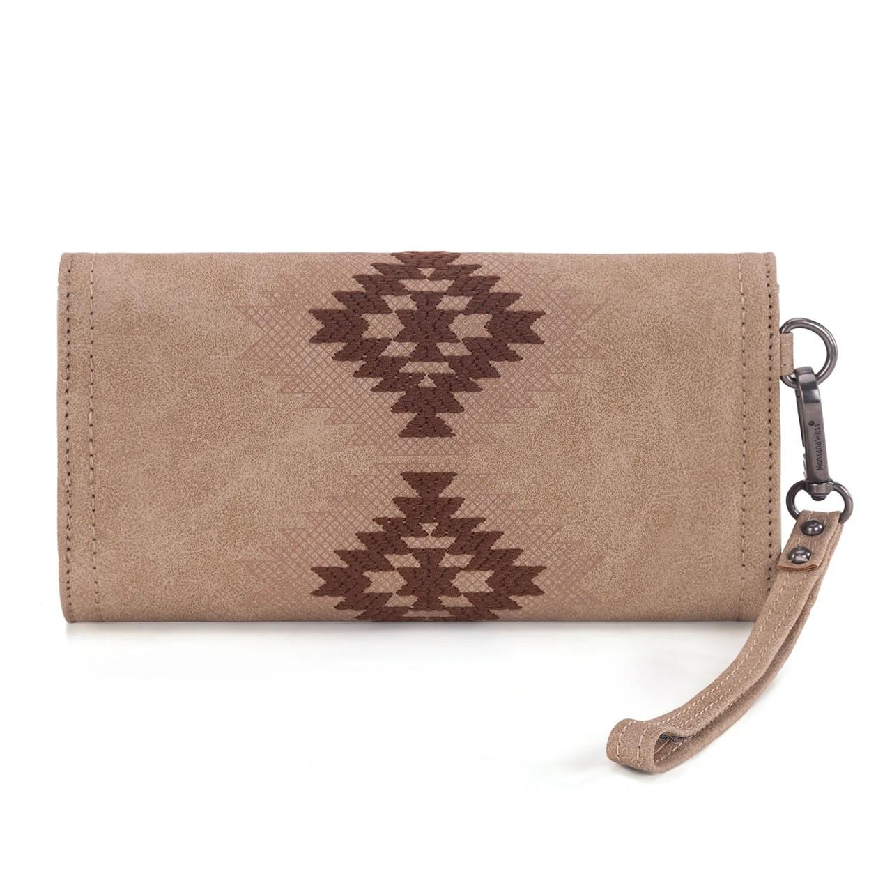 Montana West Wrangler Women's Tan Aztec Embroidered Wallet/Wristlet