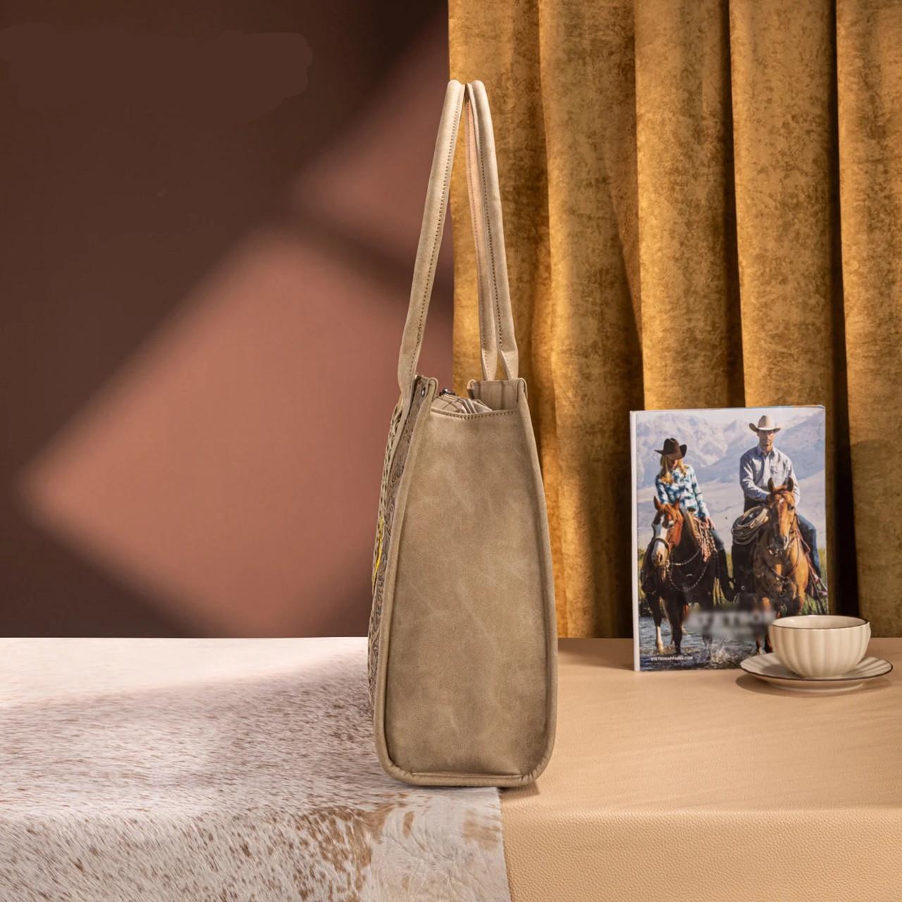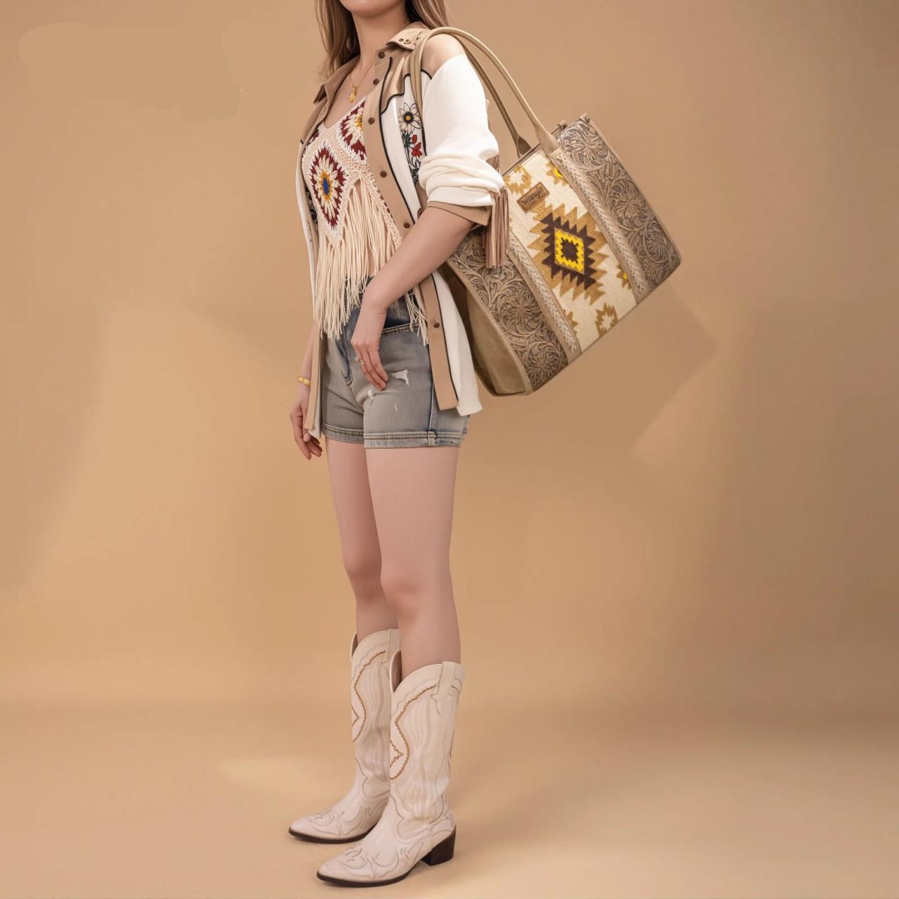 Montana West Wrangler Women's Tan Tooled Aztec Print Large Tote Bag