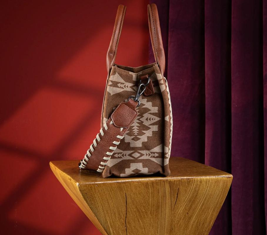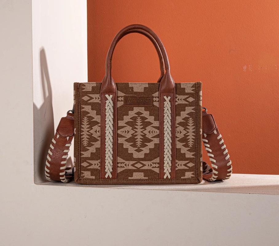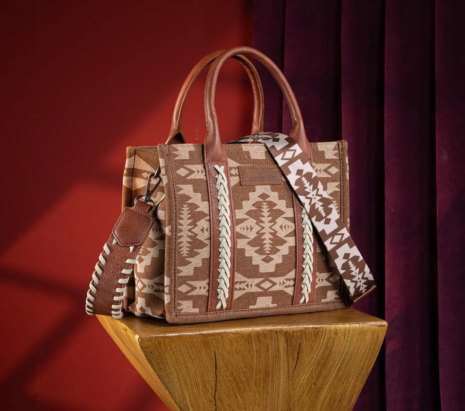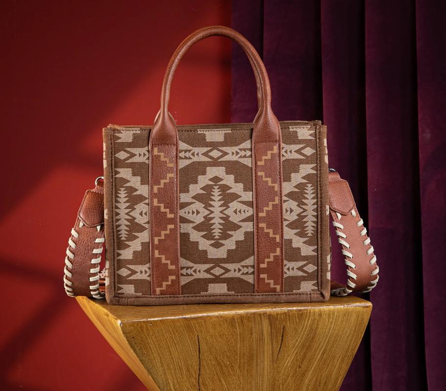Montana West Wrangler Women's Brown Southwestern Print Small Canvas Tote Bag