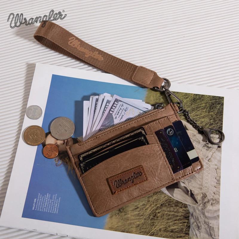 Montana West Wrangler Women's Khaki Key Chain Wristlet Card Wallet