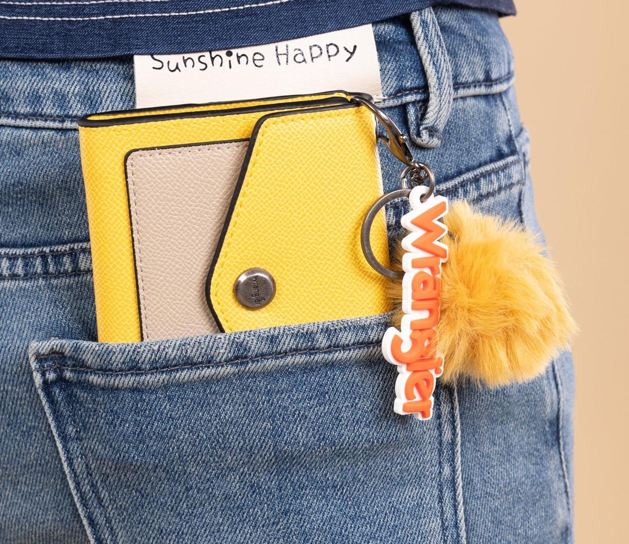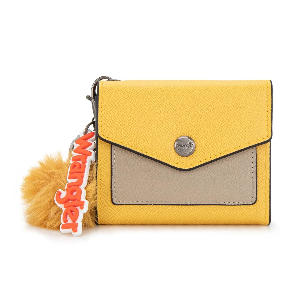 Montana West Wrangler Yellow Khaki Tri-Fold Wallet With Keyring Pom Pom
