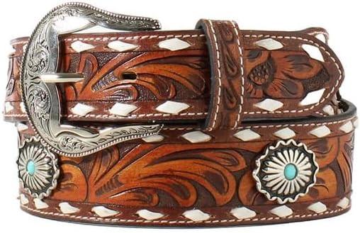 Nocona Women's Tan Tooled Conchos Buckle Lace Western Belt