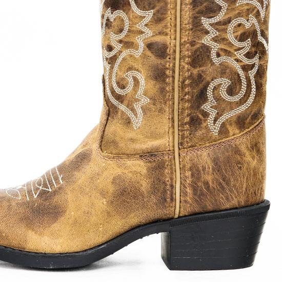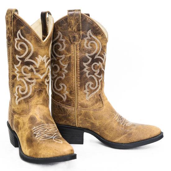 Old West Boy's Distressed Tan Round Toe Cowboy Boot