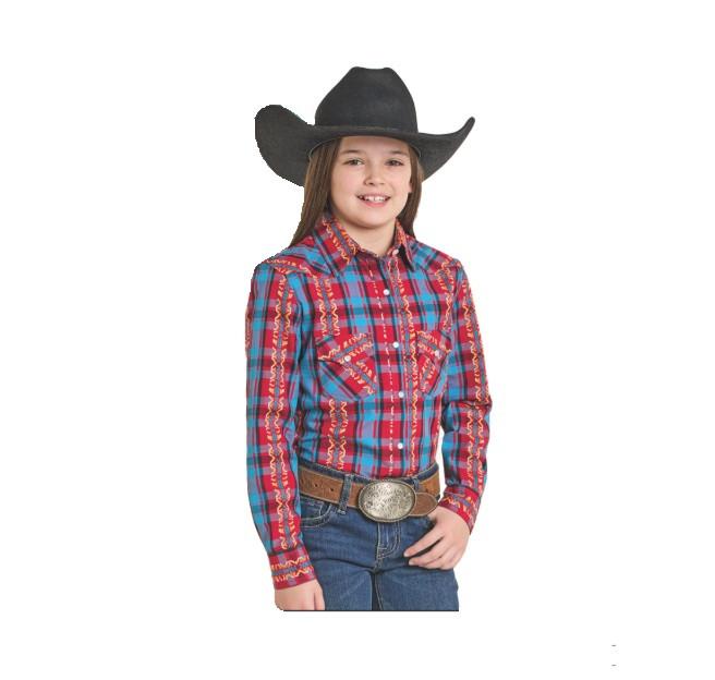 Panhandle Slim Girl's Red Dobby Plaid Snap Shirt