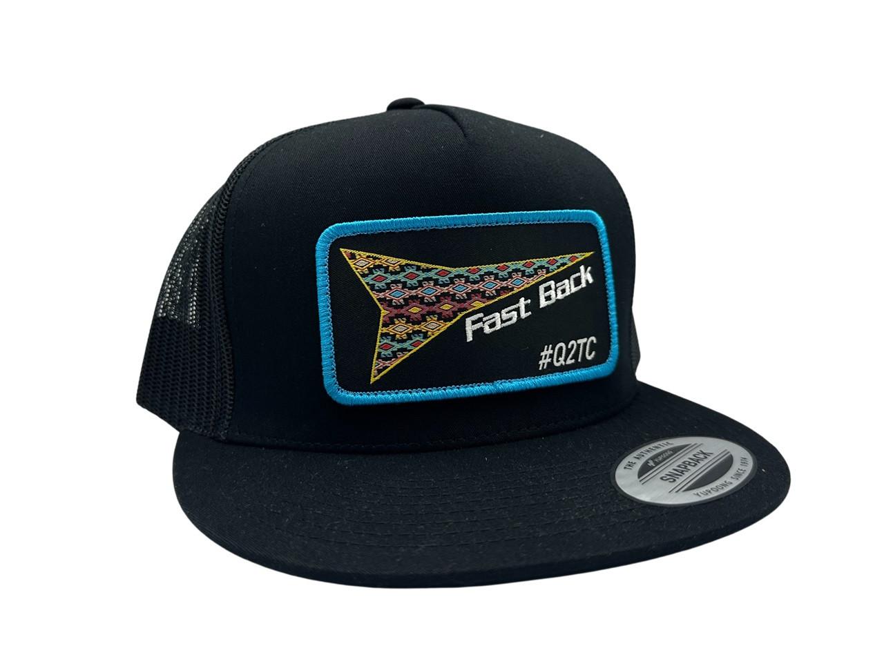 Classic Black/Black 5 panel snapback style hat featuring the exclusive “Fast Back Aztec” patch.