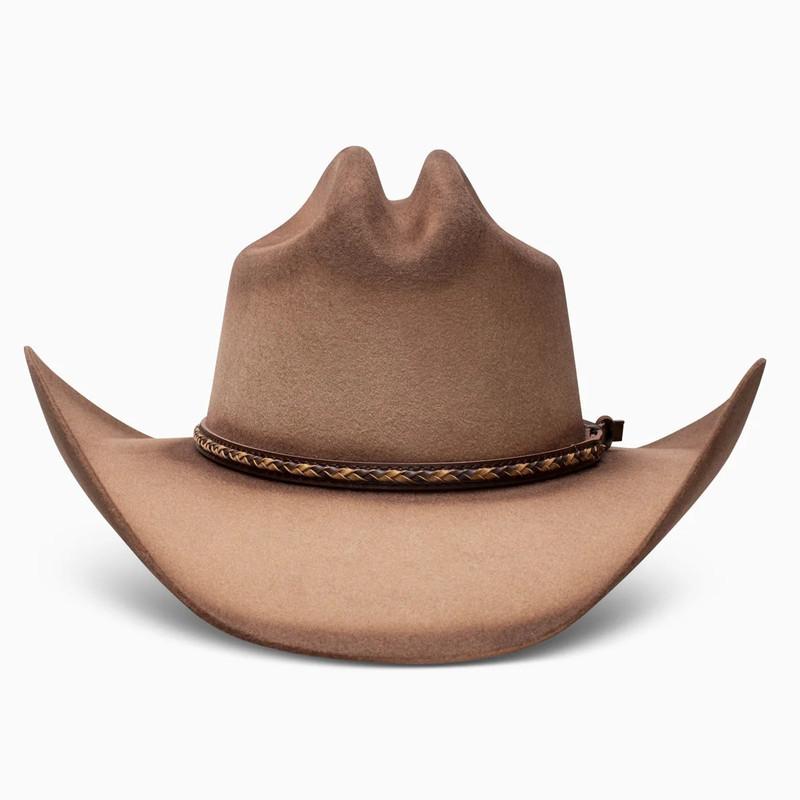 Light the bonfire! The 4X Dirt Road Cowboy Hat in Pecan was inspired by the Jason Aldean hit “Dirt Road Anthem” and is just the thing to keep you warm on a cool Georgia night. This 4X wool hat has a 4 1/8” tapered cattleman’s crown, a 4 1/8” brim, a leather sweatband, and a woven hatband. It doesn’t matter whether the evening calls for kissing, cussing, or fighting. The 4X Dirt Road from our Jason Aldean Collection is the hat you’ll want for it.