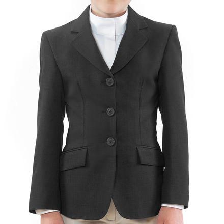 The Hampton show coat features a 3-button styling in a subtle herringbone pattern. It is fully lined, with coordinating interior piping, and finished with classic R.J. buttons. Always appropriate for the show ring and machine washable for easy care.
