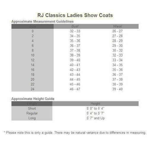 - Same traditional styling as RJ's other show coats with two front pockets and double vented back
