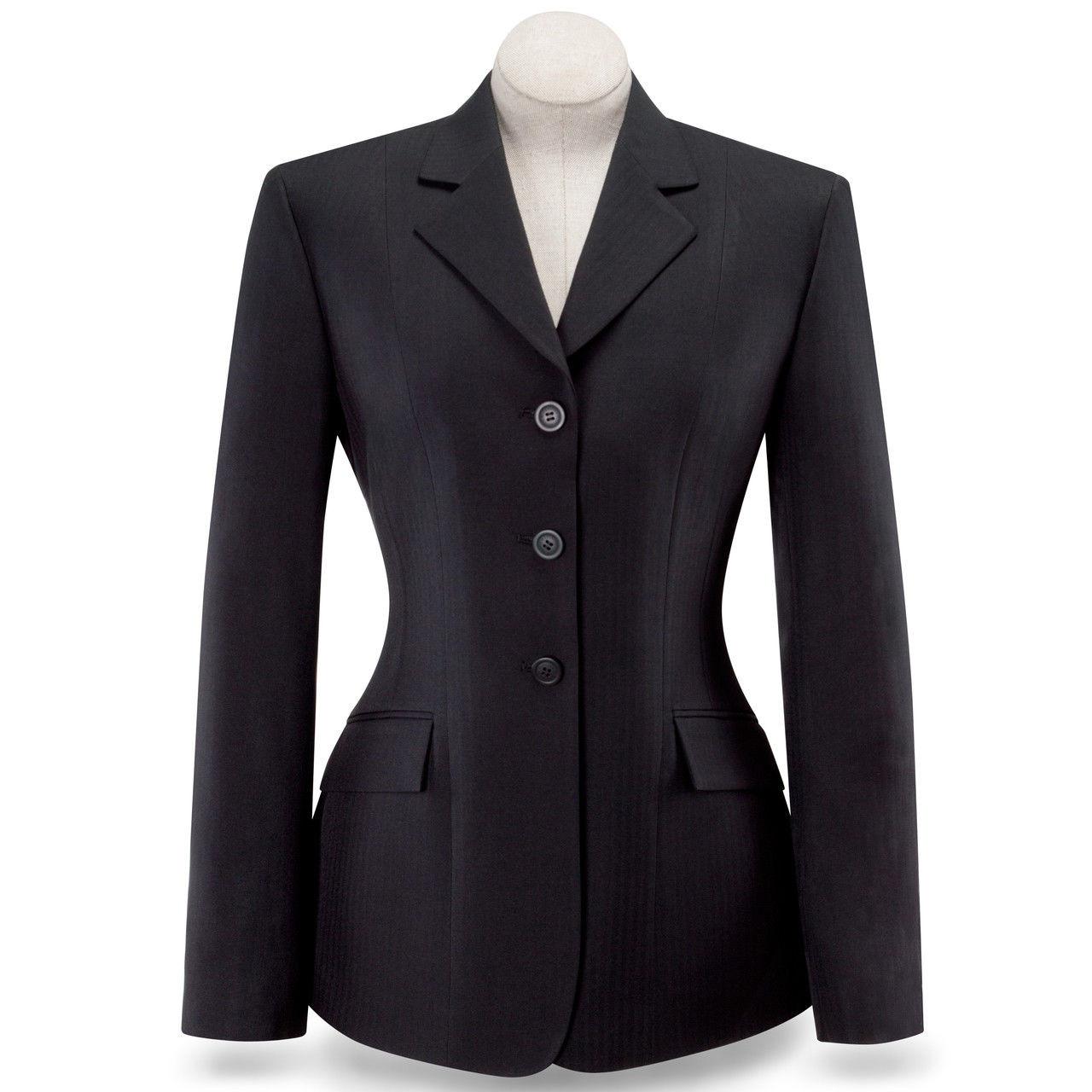 The R.J. Collection basic show coat in black herringbone offers value to every rider. The fabrics with wool-like handfeel feature traditional styling, with the modern convenience of machine washability. Features Matching lining and R.J. Logo buttons.