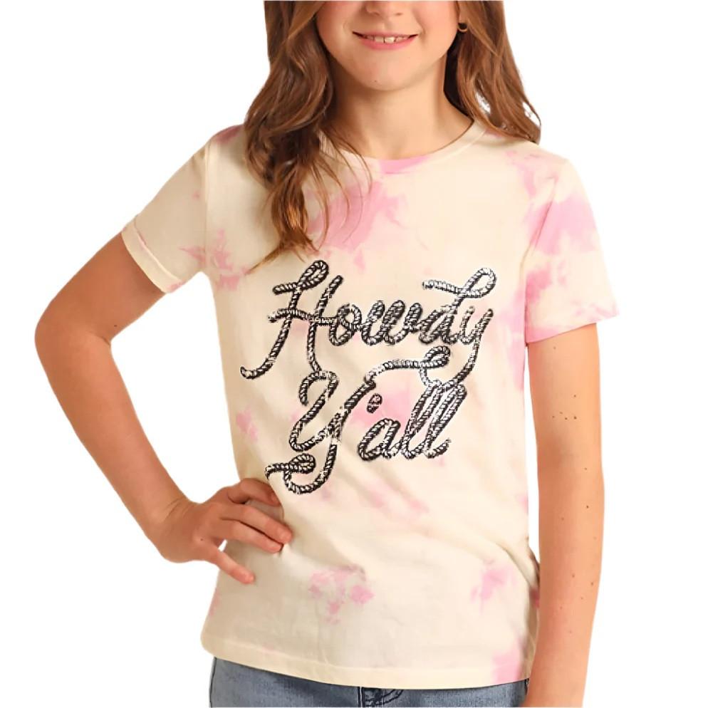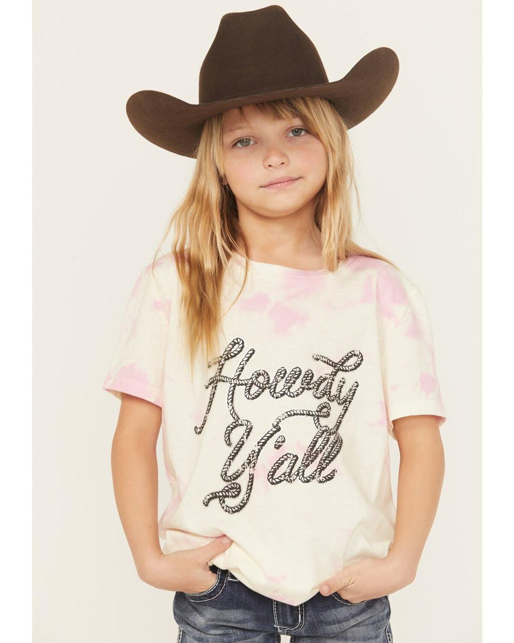 Rock & Roll Denim Girl's Baby Pink Tie Dye Howdy Y'All Graphic Tee