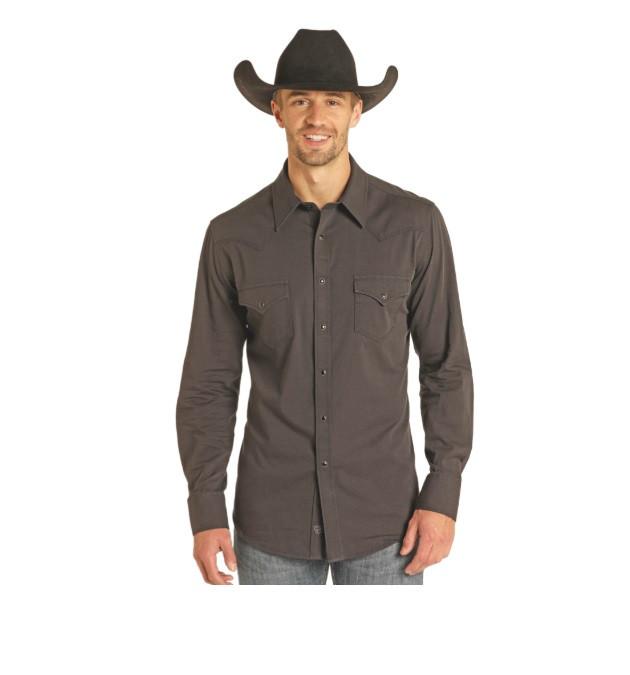 Rock & Roll Denim Men's Black Solid Twill Long Sleeve Shirt