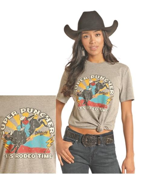 Rock & Roll Denim Panhandle Slim Dale Brisby Women's Slate Super Puncher Graphic Tee