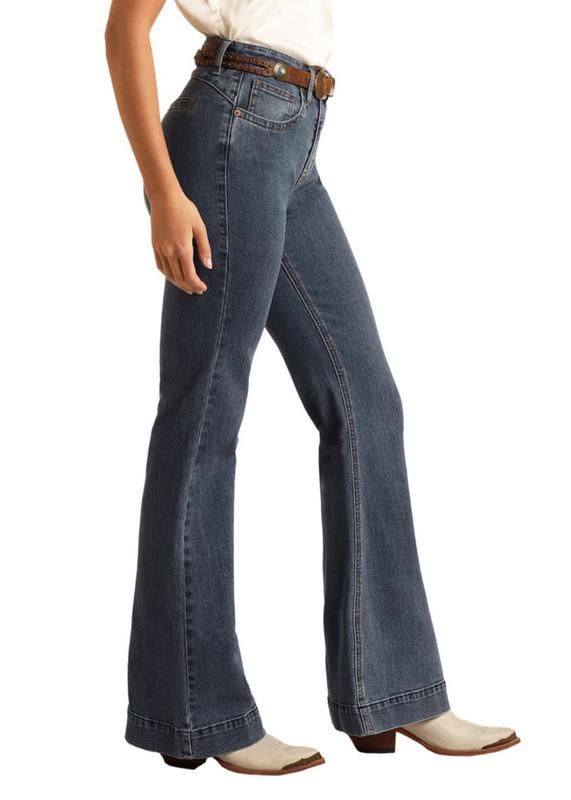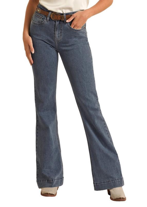 Rock & Roll Denim Panhandle Slim Women's Medium Wash Welt Pocket Trouser Jean