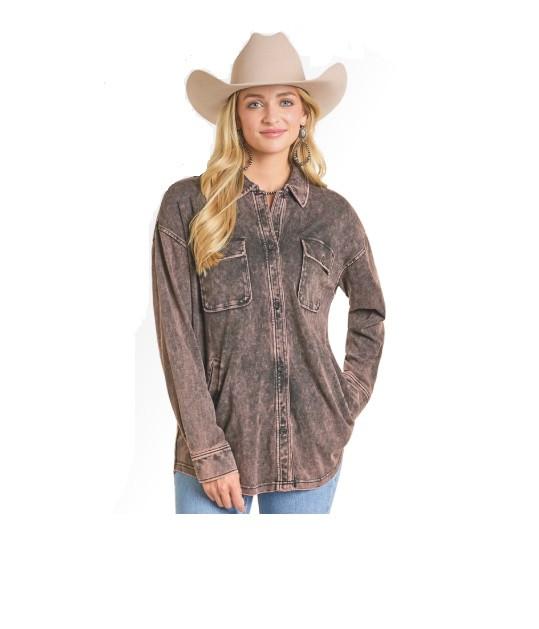 Rock & Roll Denim Women's Brown Knit Shacket With Wash
