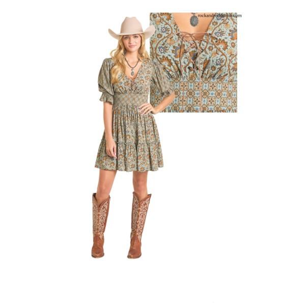 Rock & Roll Denim Women's Jade Mixed Print Mini Dress