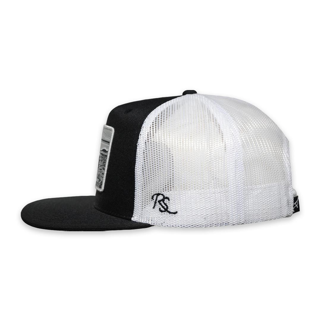 RopeSmart Ranch Life Black Trucker Cap. 5 Panel. Flat Visor.