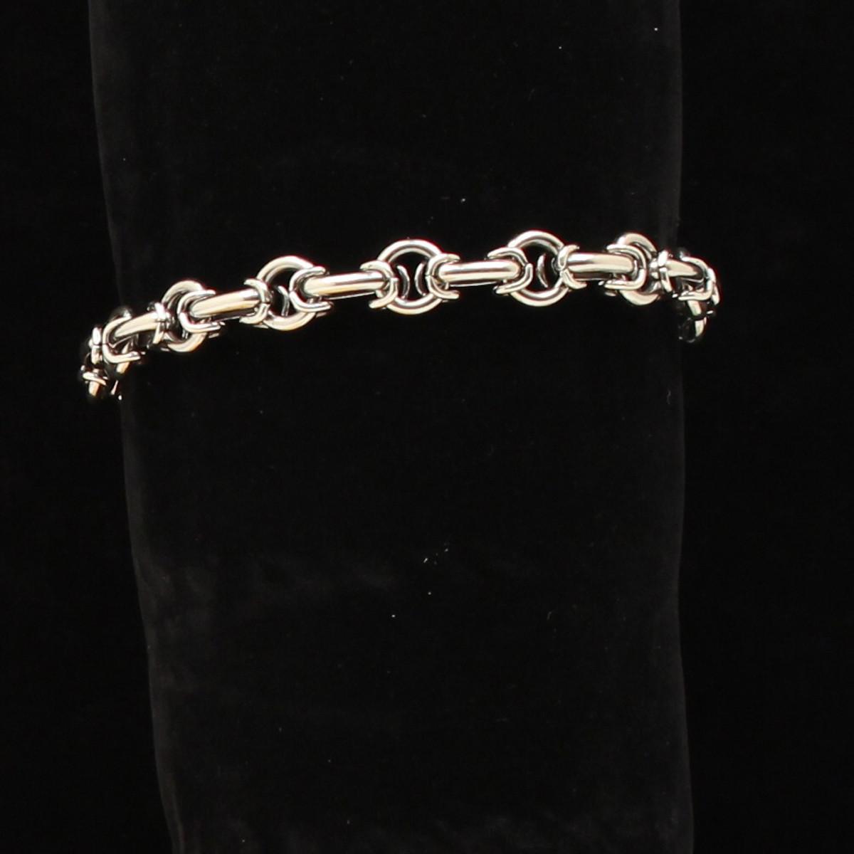 Mens Silver Strike bracelet by M&F Western Products. Beautiful antique silver finish with a round link design. Clasp Closure. Measures 9"