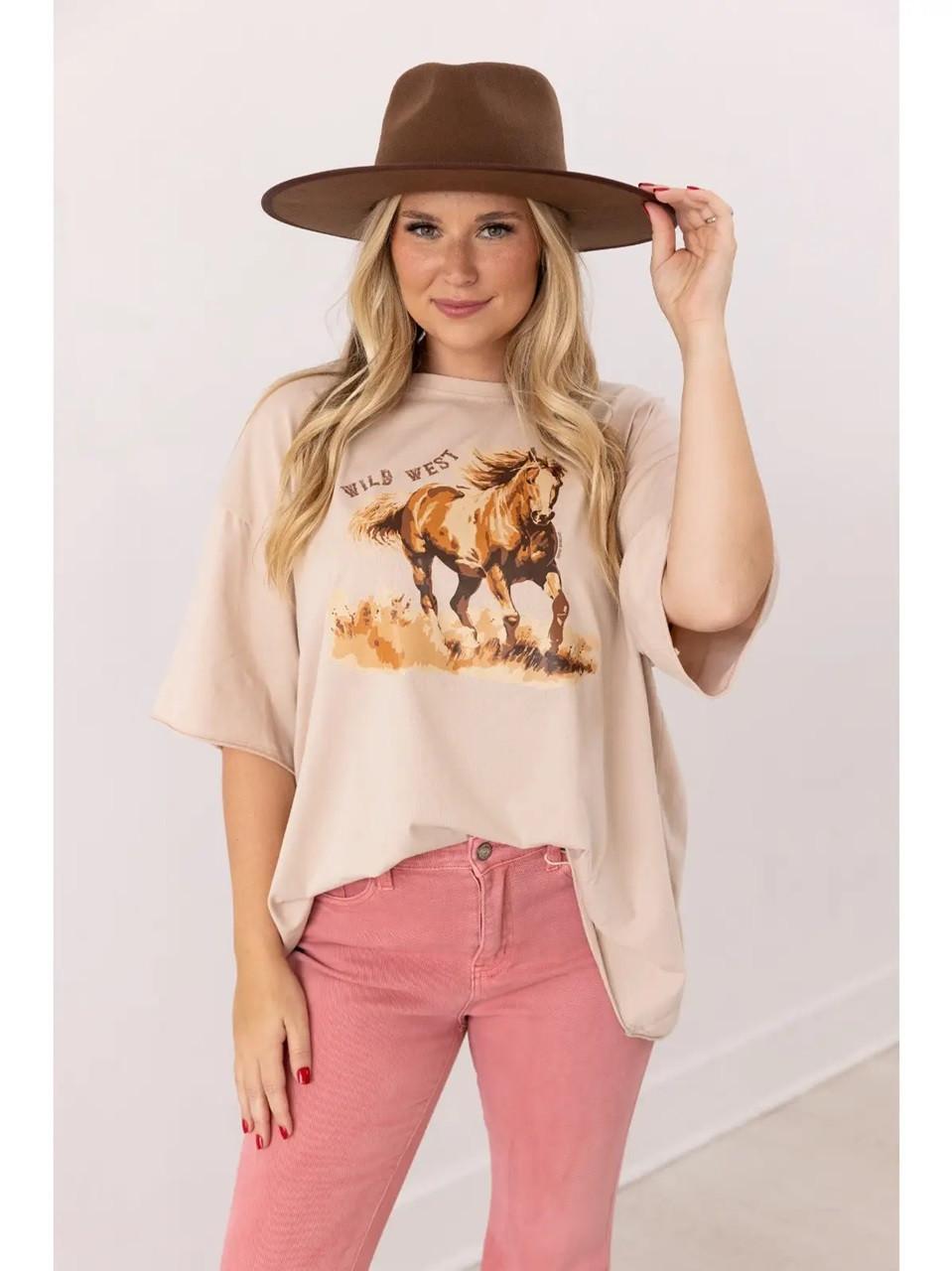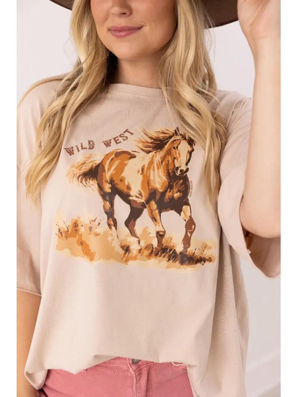 Southern Grace Women's Beige Wild West Relaxed Fit T Shirt