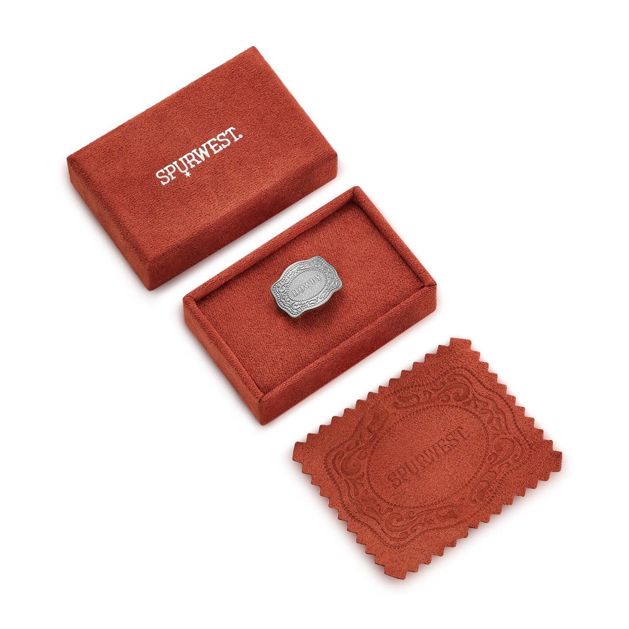 SpurWest Silver Howdy Mini Belt Buckle Adjustable Ring
