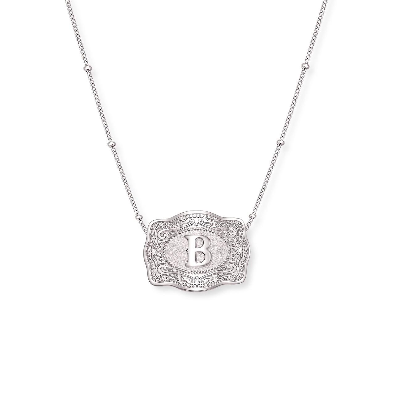 SpurWest Silver Initial "B" Mini Belt Buckle Necklace