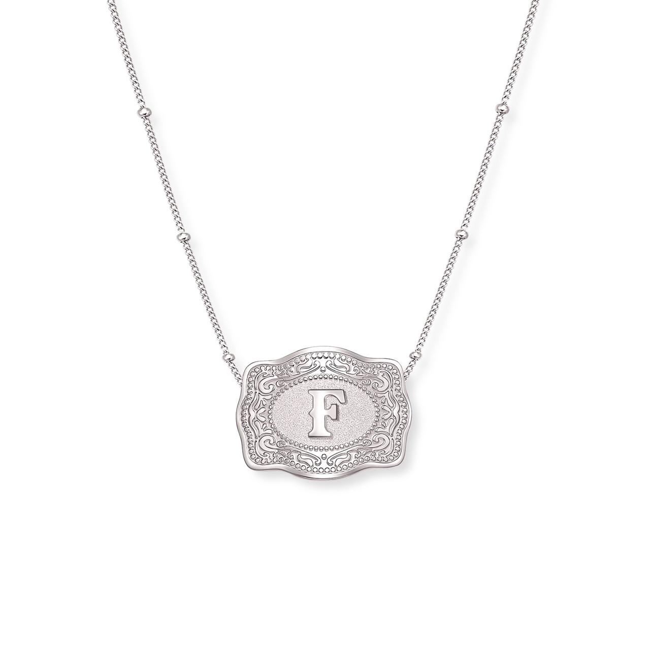 SpurWest Silver Initial "F" Mini Belt Buckle Necklace
