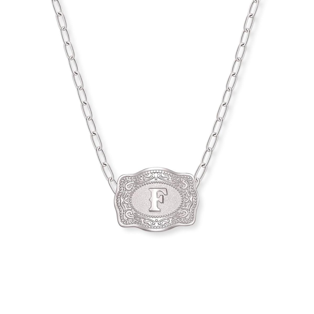 SpurWest Silver Initial "F" Paperclip Chain Mini Belt Buckle Necklace
