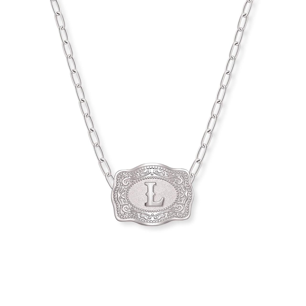 SpurWest Silver Initial "L" Paperclip Chain Mini Belt Buckle Necklace