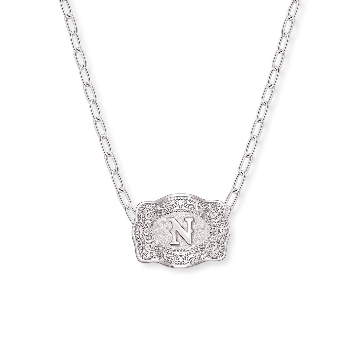 SpurWest Silver Initial "N" Paperclip Chain Mini Belt Buckle Necklace