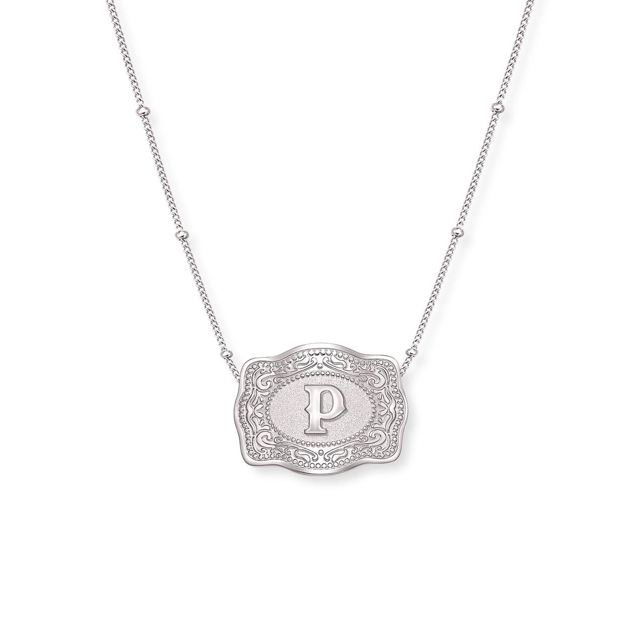 SpurWest Silver Initial "P" Mini Belt Buckle Necklace