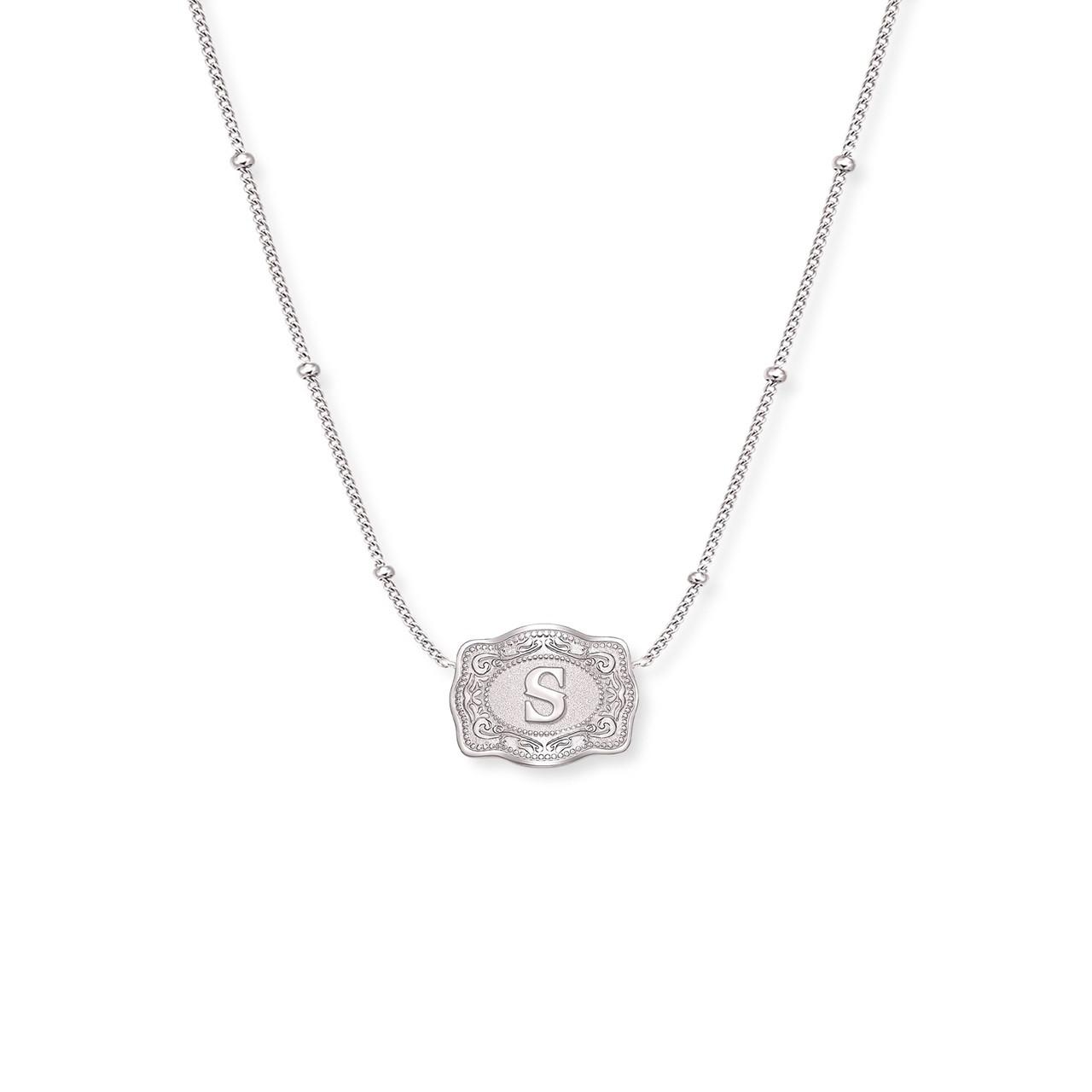 SpurWest Silver Initial "S" Ultra Mini Belt Buckle Beaded Chain Necklace