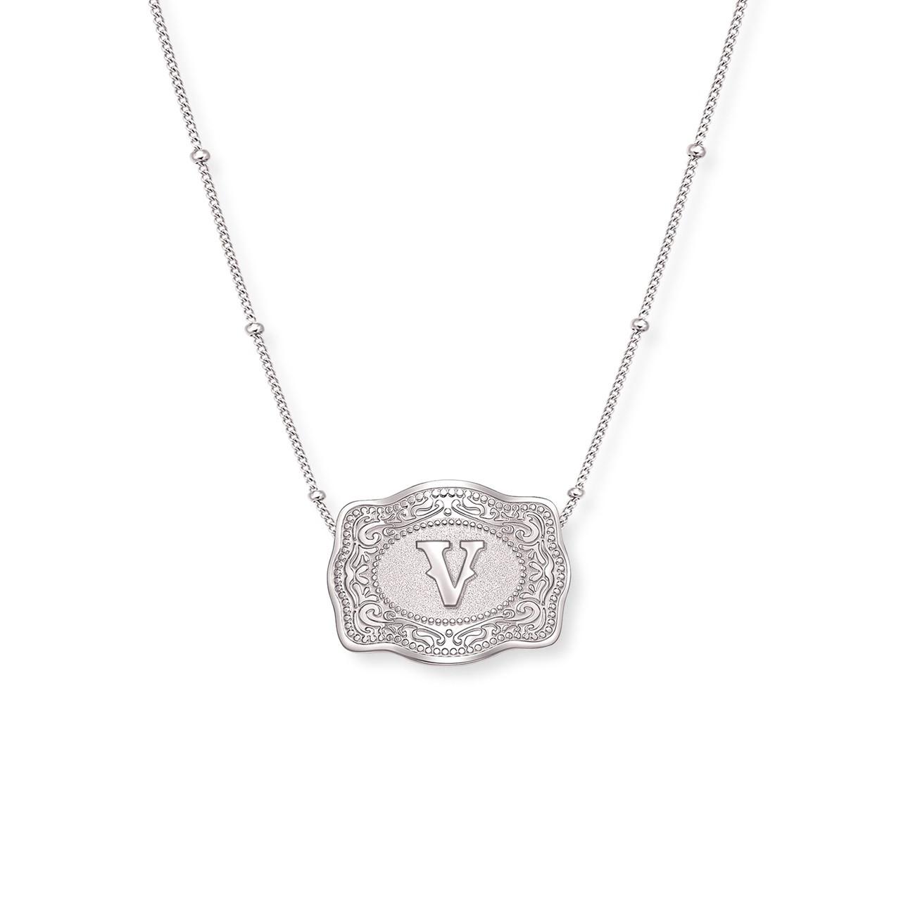 SpurWest Silver Initial "V" Mini Belt Buckle Necklace