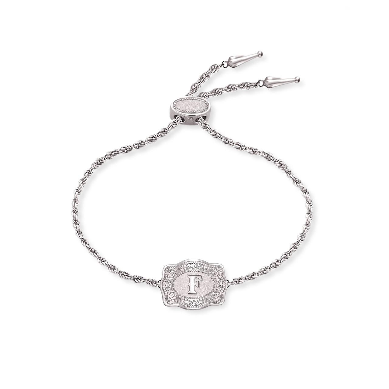 SpurWest Silver Ultra Mini Belt Buckle Initial "F" Bracelet