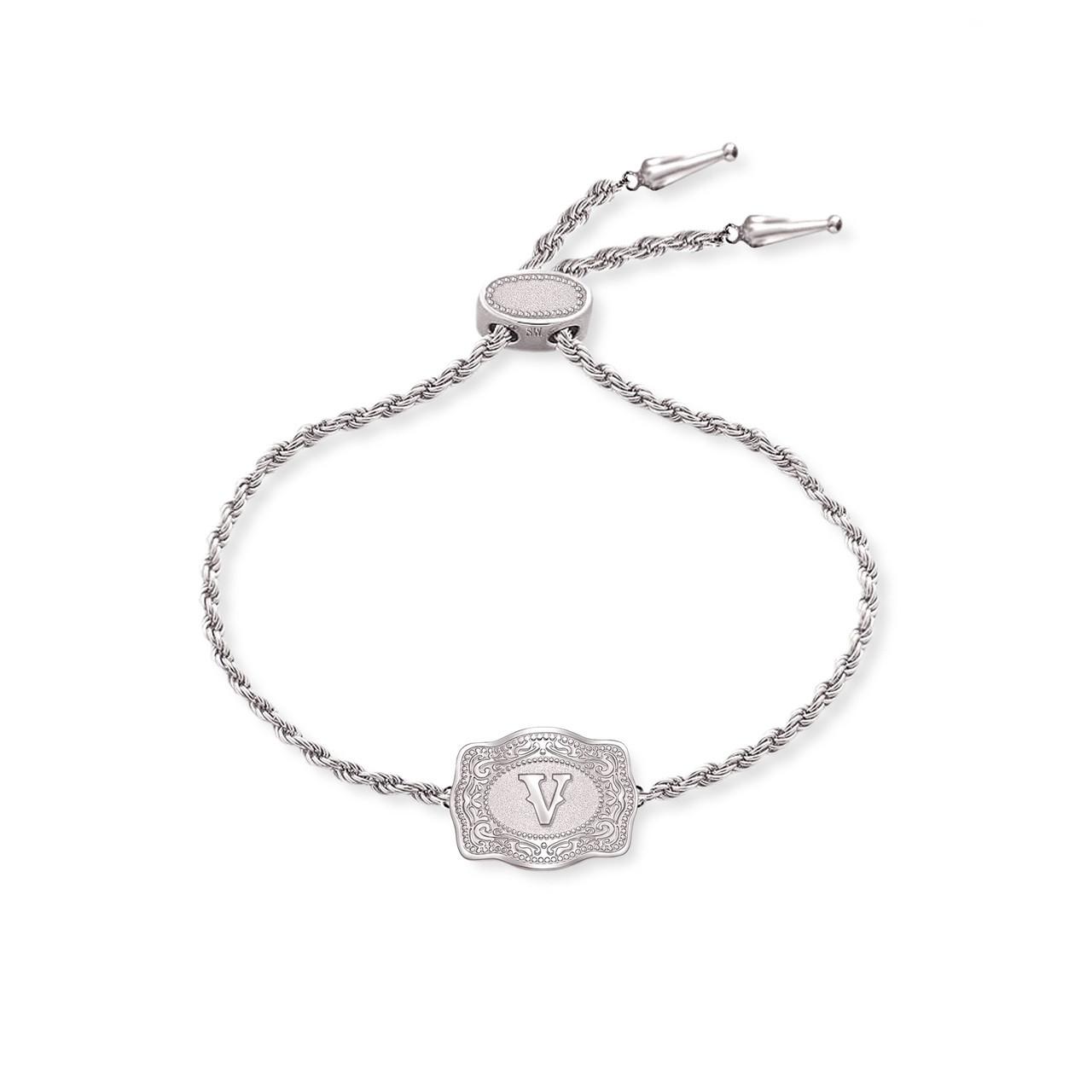 SpurWest Silver Ultra Mini Belt Buckle Initial "V" Bracelet