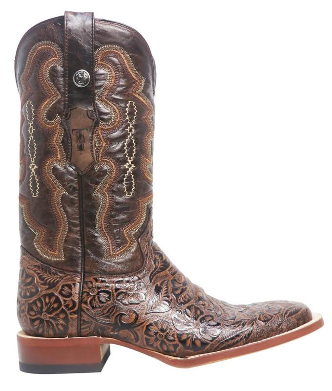 Tanner Mark Men's Classic Brown Archer Hand Tooled Square Toe Leather Boot