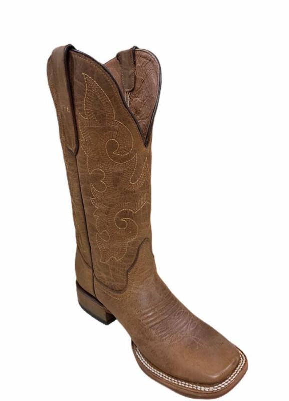 Tanner Mark Women's Cognac Pull Up Wide Square Toe Western Leather Boot