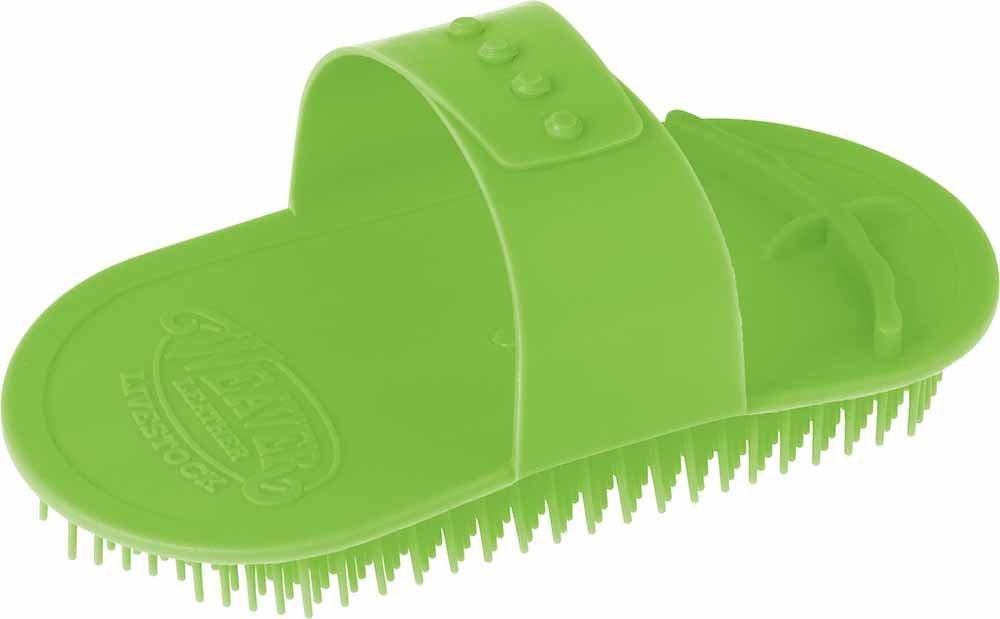 The ideal spacing of bristles on this grooming brush makes it perfect for use on cattle with thick coats to help train the hair and stimulate hair growth. It also works great for washing and scrubbing livestock animals for a deep down clean. Handle easily adjusts over hand for a secure fit. Measures 3-1/2" W x 7" L.