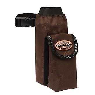 Convenient holder constructed from thick, durable 1,680D polyester fabric coated with polyurethane for water resistance features an elastic opening that securely grips water bottle and a reflective accented front pocket with hook and loop closure for easy access to cell phone, keys or other small necessities. A strap at the top with a black plastic quick-release buckle and a black plastic dee at the bottom provide easy attachment to a saddle.
