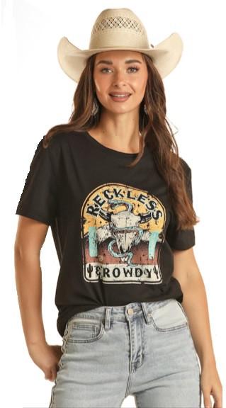 PANHANDLE SLIM Choose Options Women's Broncs and Bulls Graphic Tee with Burnout Wash White MSRP: Was: Now: $26.00 Women's Broncs and Bulls Graphic Tee with Burnout Wash White Material: 55% Cotton, 45% Polyester