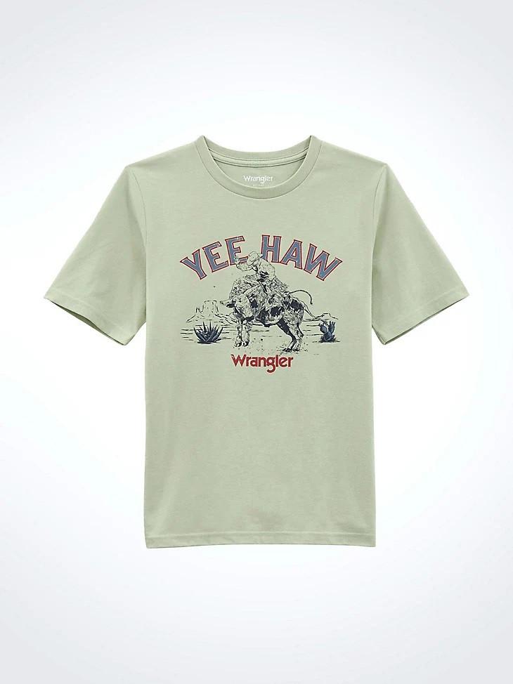 Start wearing iconic clothing young. These graphic tees exude Wrangler's iconic, all American style. Bold colors and slightly distressed images give these vintage-inspired tees a classic look that your little guy will be eager to wear.