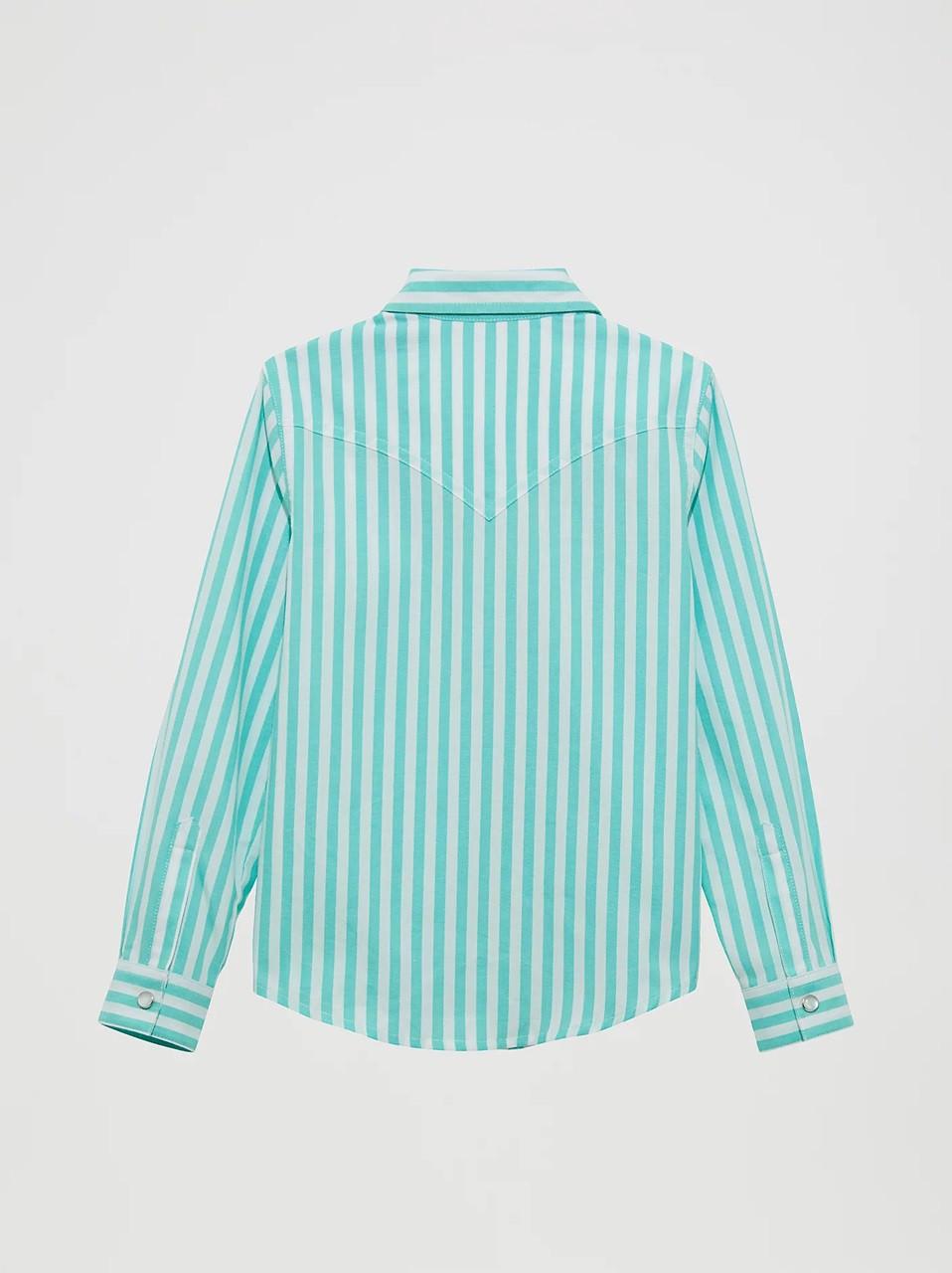 Wrangler Girl's Teal Striped Western Snap Shirt