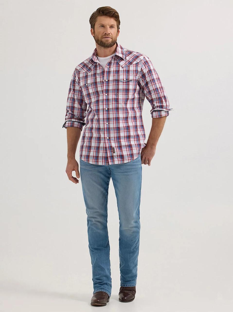 NOTHING BEATS AN ORIGINAL, BUT THIS MIGHT - Since 1947, Wrangler® jeans have been a cowboy-approved wardrobe staple. Inspired by our Western heritage, these Wrangler® Retro® jeans combine our most iconic features with contemporary fits and washes. This updated classic features the same worn leather patch with our rope logo, 'W' stitching on the back pockets, and five-pocket styling. These men's slim bootcut jeans feature a streamlined silhouette through the seat, thigh, and knee, but the leg widens from the knee downward, which is good news for boots. When it comes to finding the best bootcut jeans for men, your search ends here.