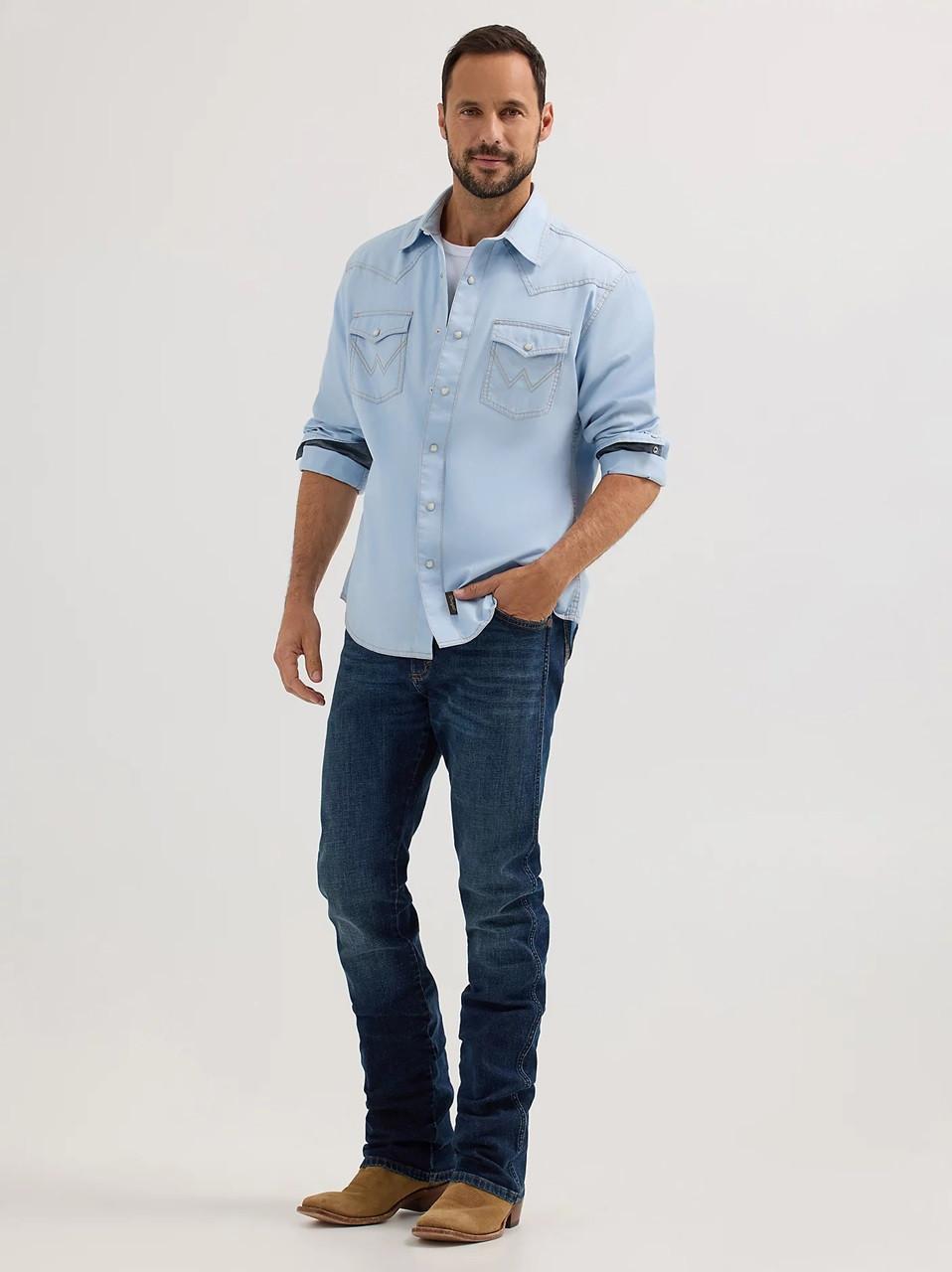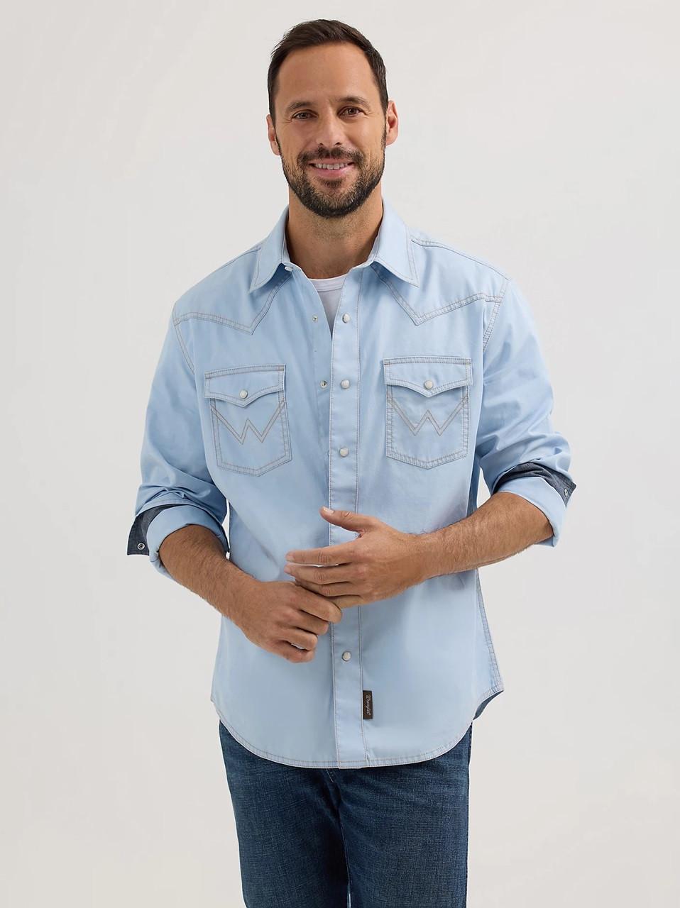 Wrangler Men's Ice Blue Retro Premium Western Snap Solid Shirt