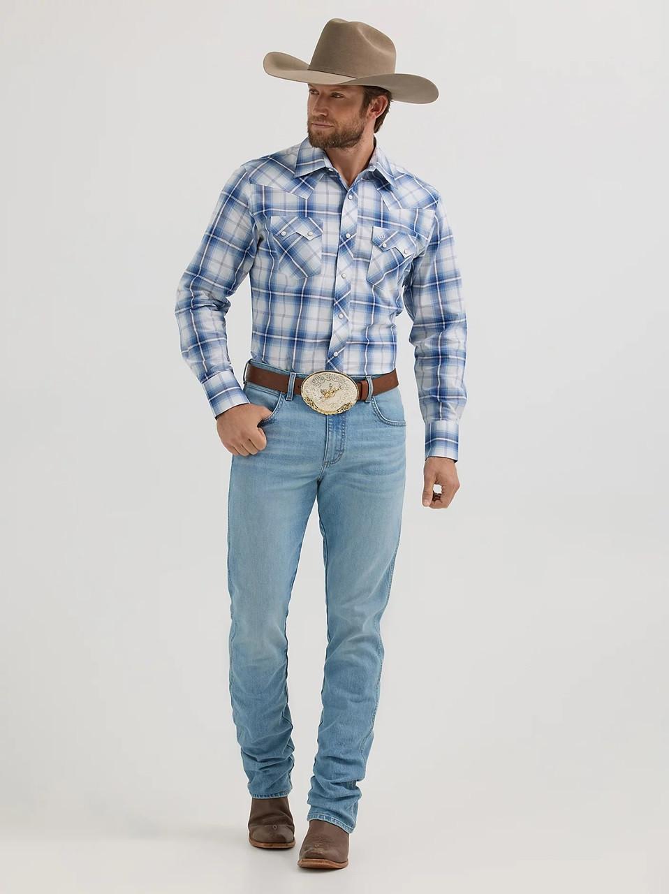 CLASSIC WITH A CONTEMPORARY TWIST - Paying tribute to our Western roots, the men's Wrangler Retro® long-sleeve sawtooth snap pocket western shirt gives the classic style you know a modern look and feel. It comes with all the same details you love, including a spread collar, pointed yokes, and two sawtooth snap flap pockets with embroidery to add a bold element to every outfit. Plus, it features a modern fit and it's crafted from cotton for comfort and long-lasting durability, no matter how often you wear it. Wear it with a pair of Wrangler Retro bootcut jeans to complete the look for any occasion.