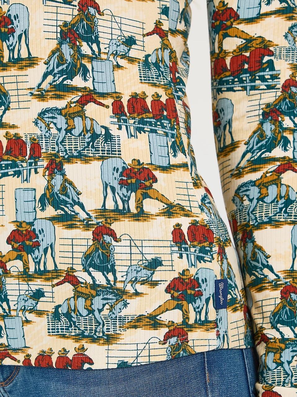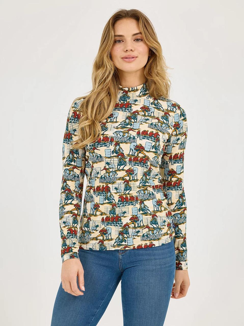 Wrangler Women's Blue Western Print Mock Neck Shirt