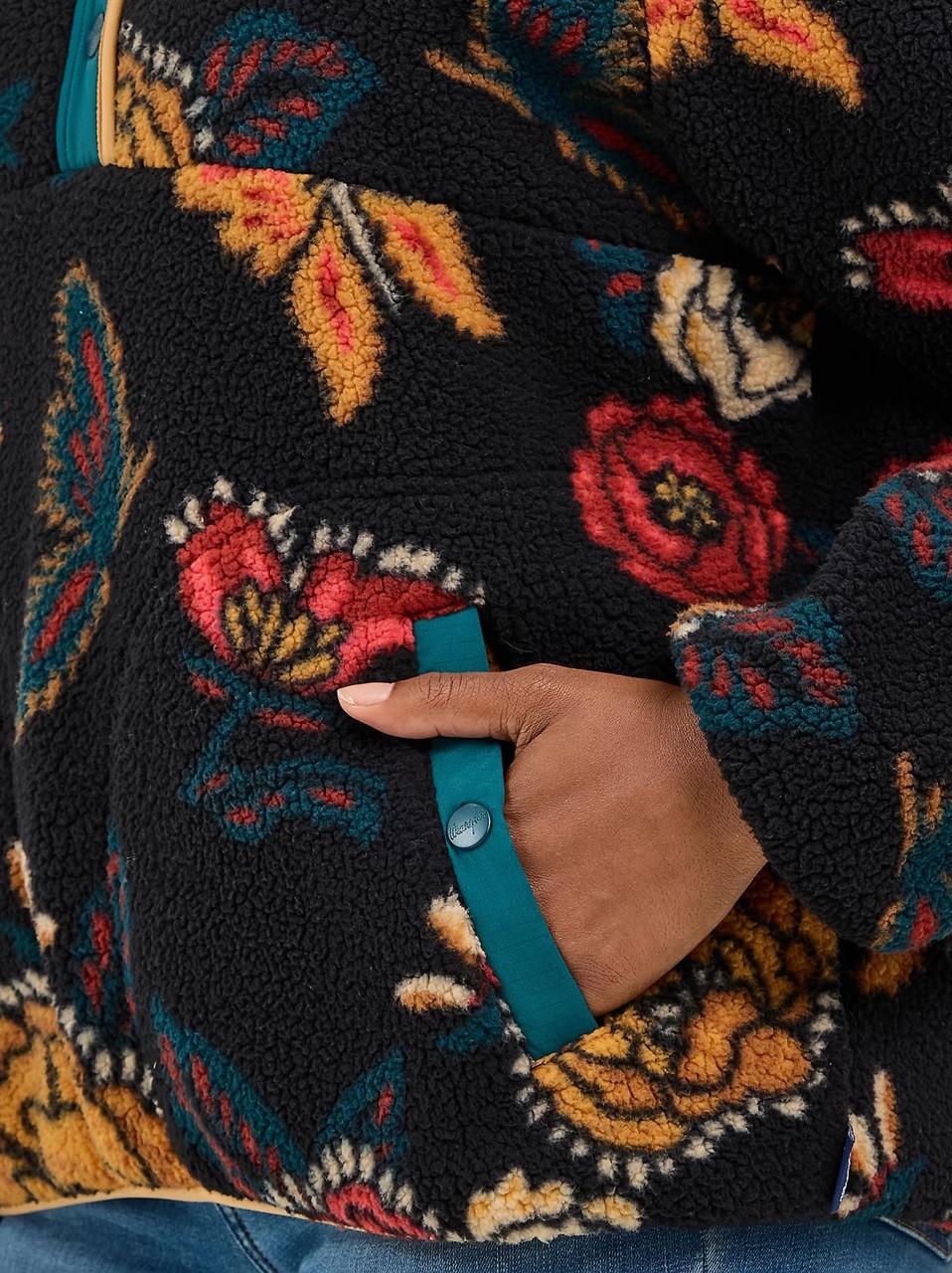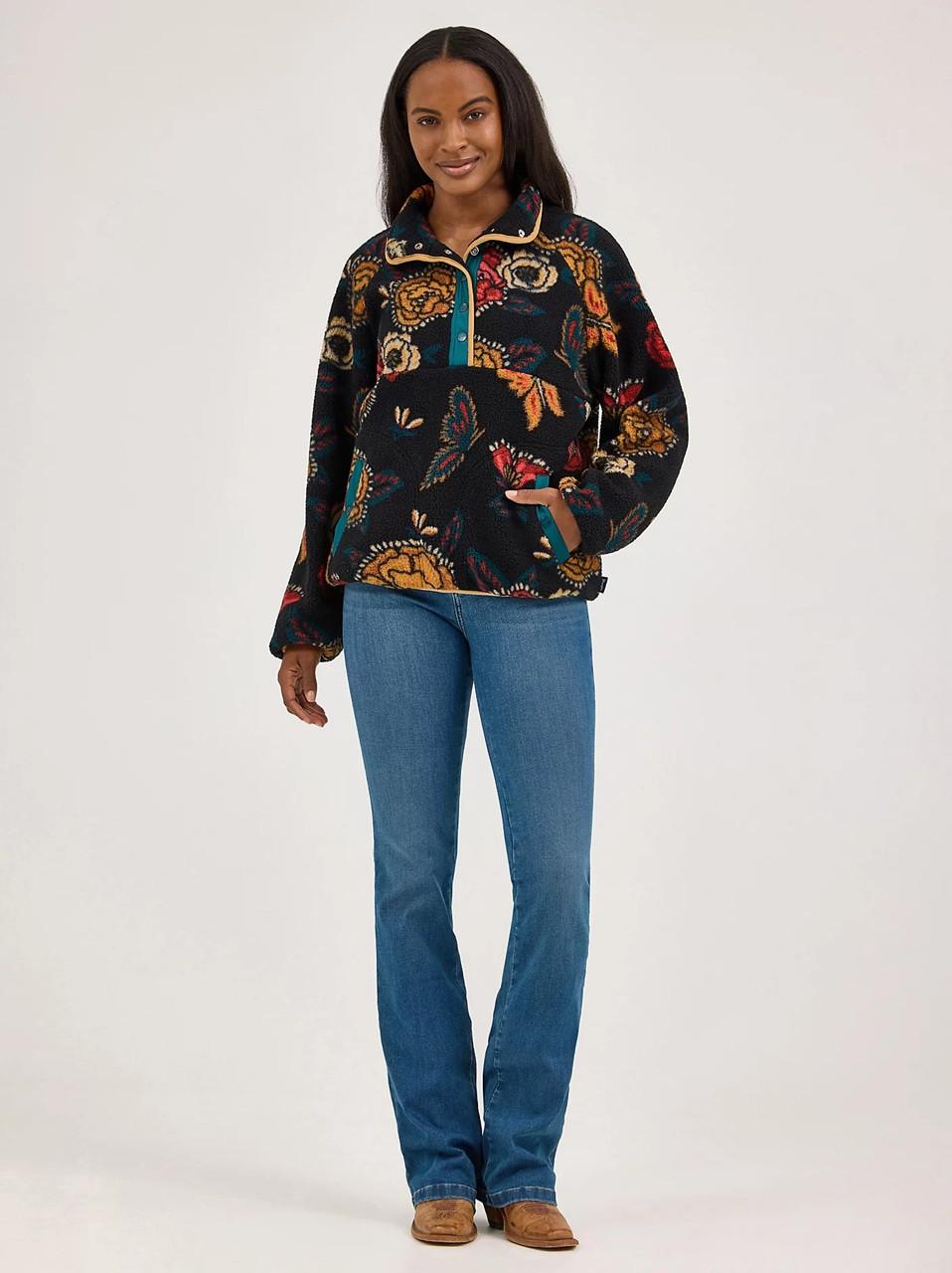Wrangler Women's Butterfly Black Retro Half Snap Sherpa Pullover