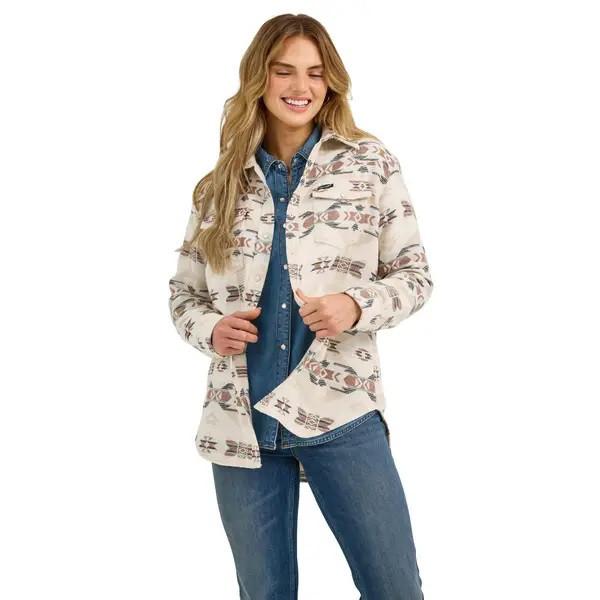 Wrangler Women's Cream Multi Jacquard Aztec Long Sleeve Shacket